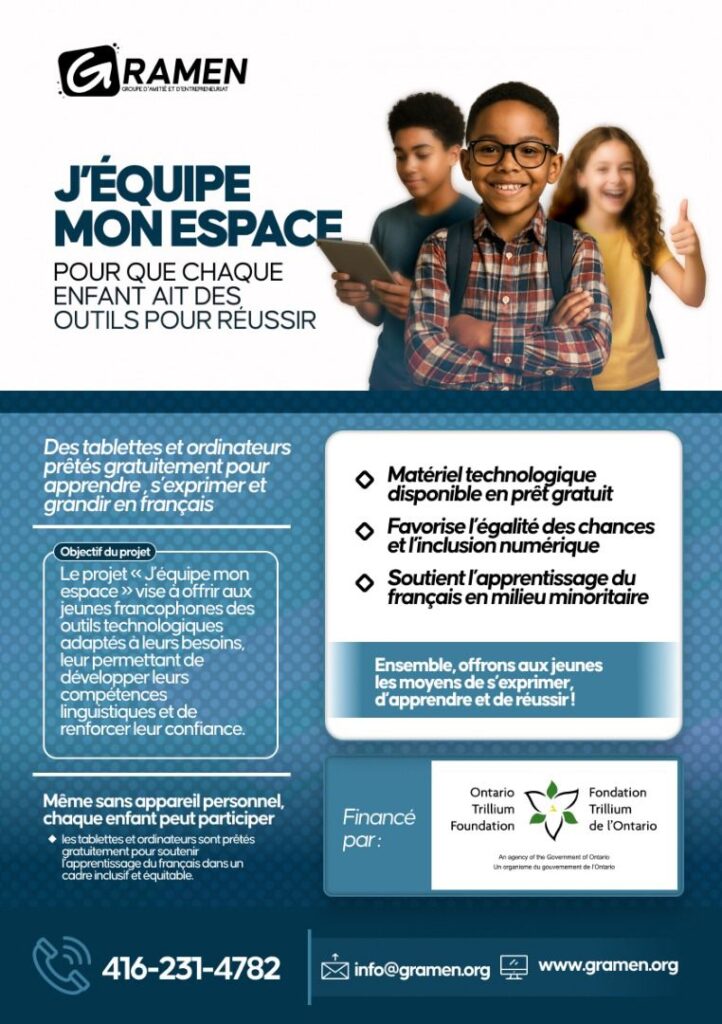 GRAMEN est fière d’annoncer qu’elle est l’heureuse récipiendaire d’une subvention de 54 600$ dans le cadre du programme « Subvention d’immobilisations » fourni par le gouvernement de l’Ontario et la Fondation Trillium de l’Ontario (FTO).